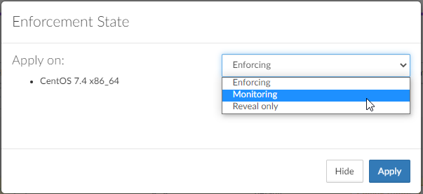 Если вам необходимо протестировать политику микросегментации на агенте перед тем, как применить ее в среде, используйте функцию Set Enforcement State для перехода в режим Monitoring. Вы можете применить режим Monitoring для политики на любой период времени, а когда убедитесь, что она безопасна и не нарушает сетевые процессы, то можно снова переключиться в режим Enforcing и внедрить протестированную политику. Обратите внимание, что сетевой журнал Network Log также поддерживает режим Monitoring — каждое заблокированное соединение в этом режиме будет зарегистрировано как Action = Will Be Blocked.