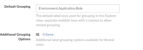 По умолчанию в Akamai Guardicore настроены следующие группировки активов для карты коммуникаций ЦОДа: среда, приложение и роль (Environment, Application, Role), как это показано на изображении ниже.