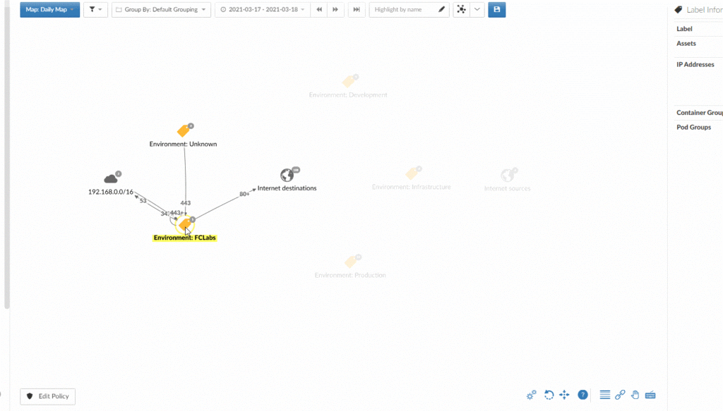 Эта функция поможет вам убрать с Reveal-карты ненужные активы. Просто нажмите кнопку Delete на клавиатуре и удалите лишние активы, группы активов, потоки и т. д. Это не удалит сами активы или группы из Akamai Guardicore, а лишь временно уберет их с Reveal-карты. Обновление страницы вернет все обратно.